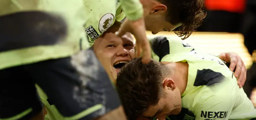 Zwoegend Manchester City blijft dankzij Haaland in spoor van koploper Arsenal